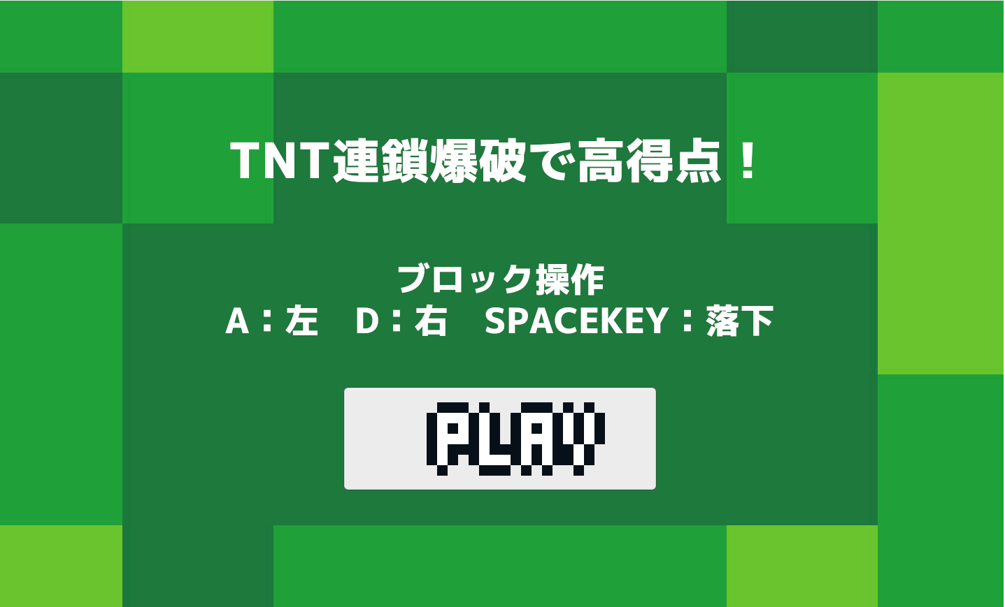 同じブロックが触れると1段階進化!TNT×3で爆発&一掃!
