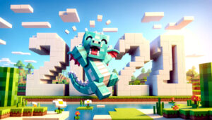 「必要な要素:2024と龍の絵 テイスト:マイクラ風、かわいい感じで サイズ:横長のバナー」