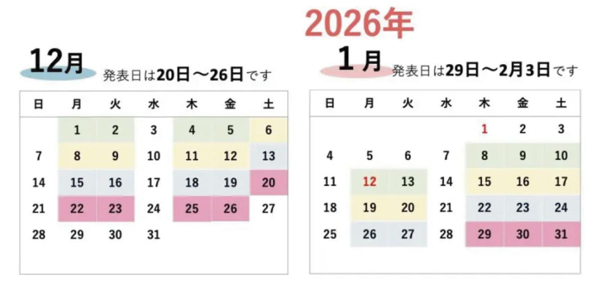 12月分の発表は【12月20日(土)〜12月26日(金)】です。