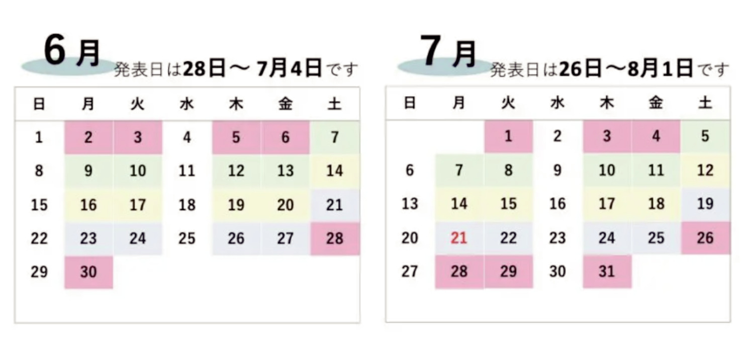 6月分の発表【6/28(土)〜7/4(金)】です。