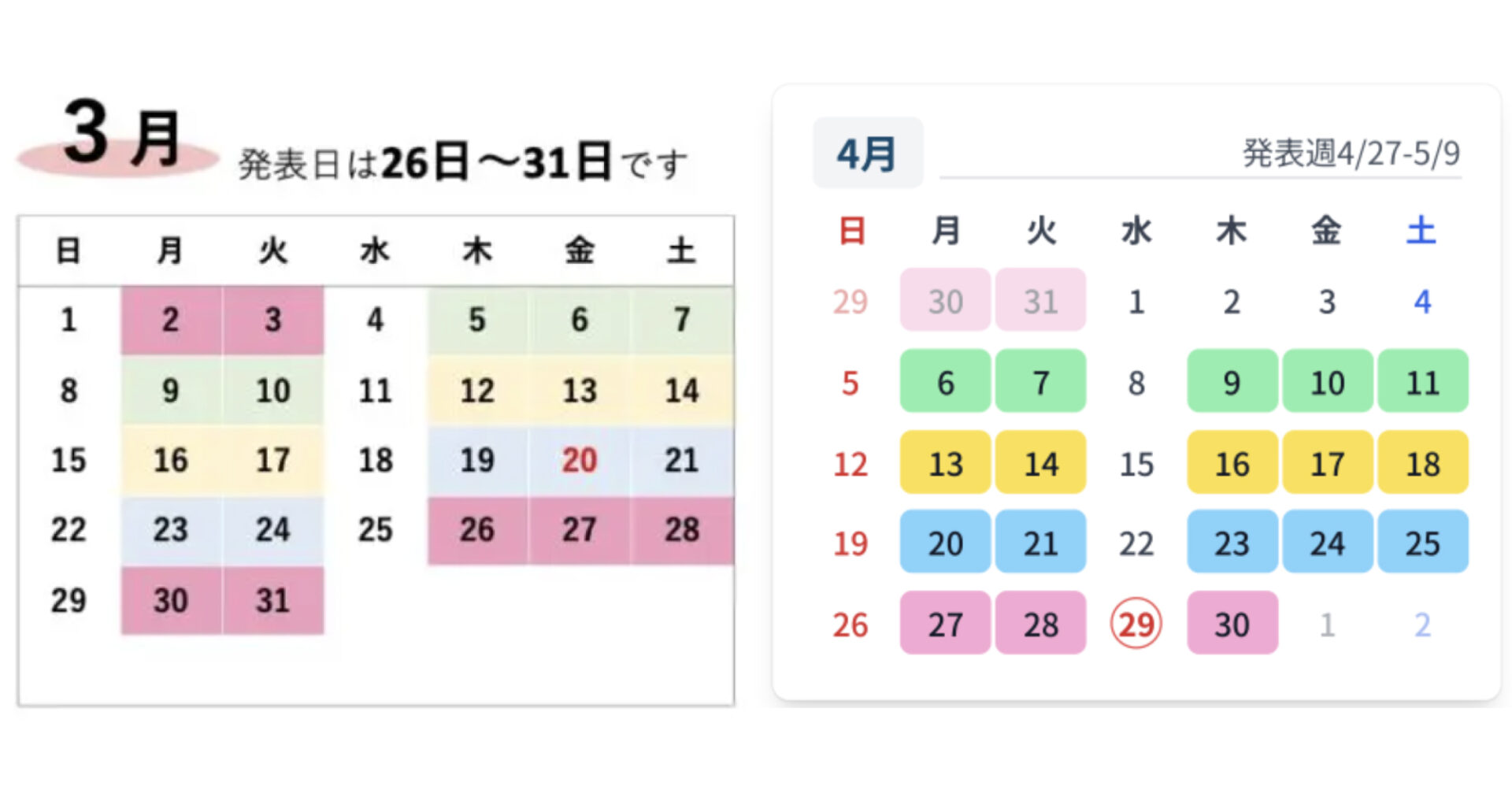 3月の発表週は【3月26日(木)〜3月31日(火)】です。