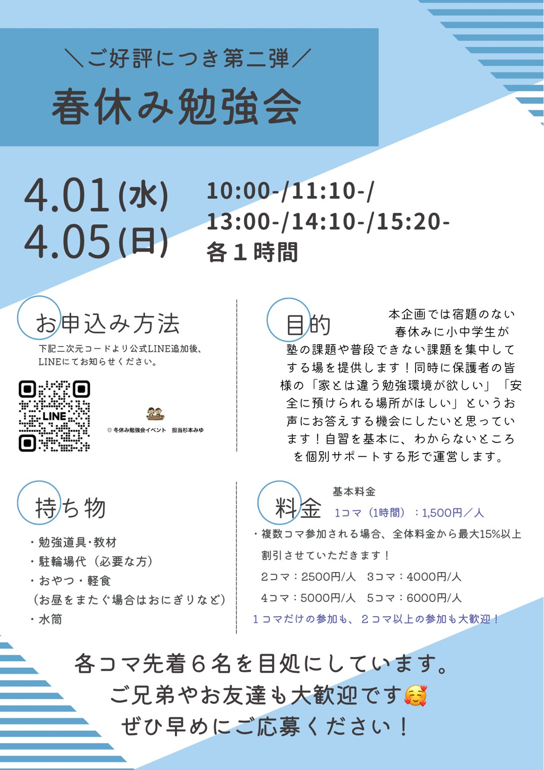 前回日程が合わなかった生徒さん、もう一度参加したい生徒さん、ぜひこの機会にご参加ください✨